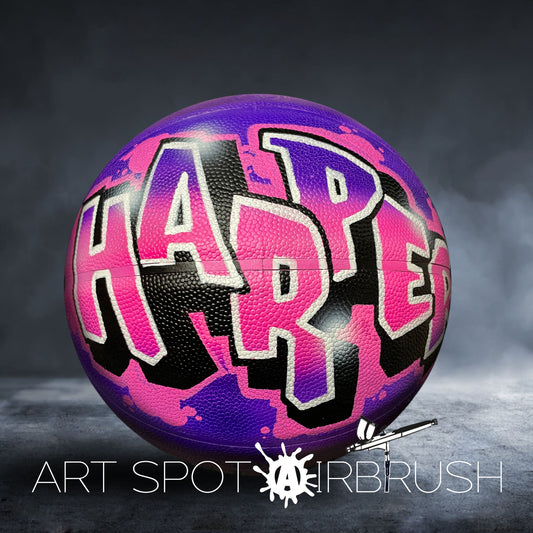Personalized Basketball with a Name Painted in Custom Airbrush Graffiti